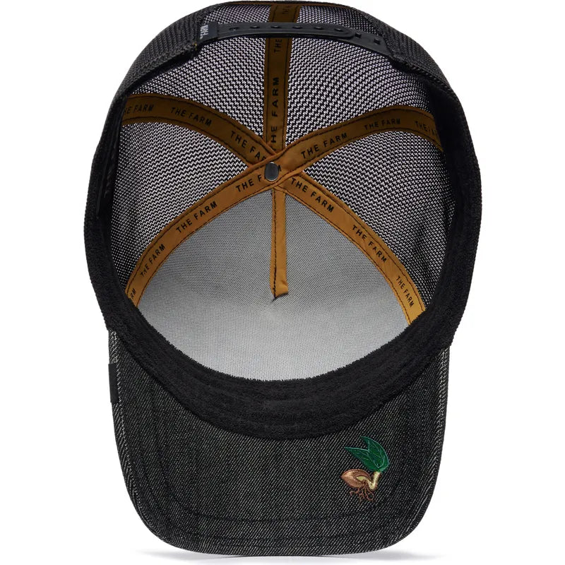 - Estilo unisex, ideal para quienes buscan un accesorio con un diseño robusto de mezclilla y un toque vibrante de color, asociado a la colección "The Farm" de Goorin Bros.