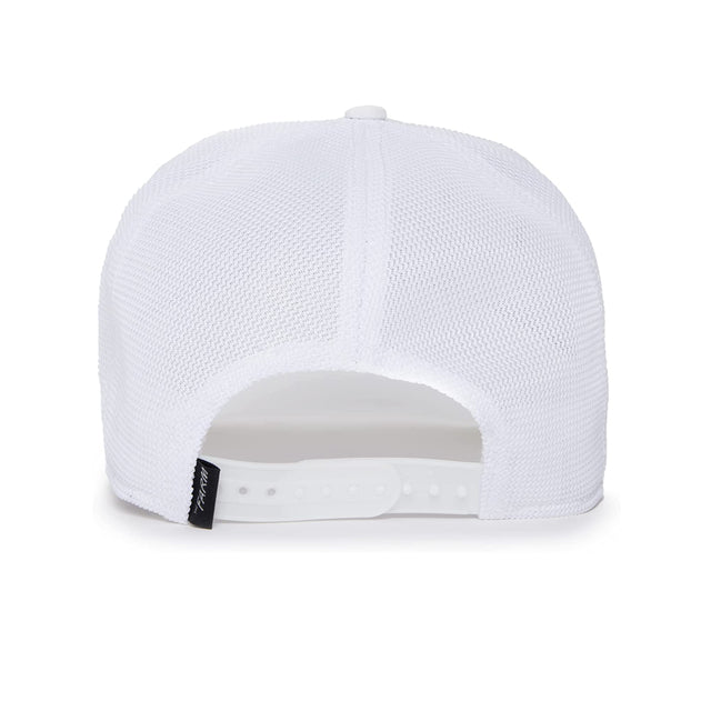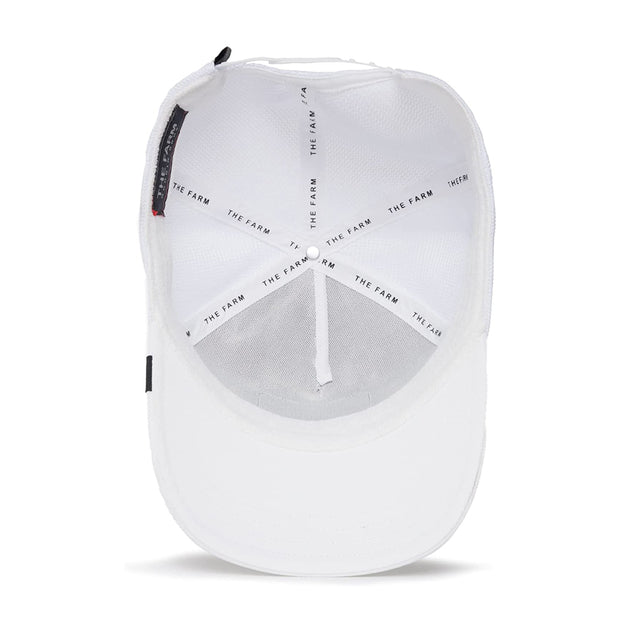 - Visera curva de color blanco, con costuras decorativas que la atraviesan.